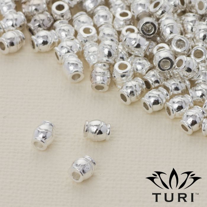 Przekładka beczułka ze wzorkiem w srebrnym kolorze 4.5x5.5mm
