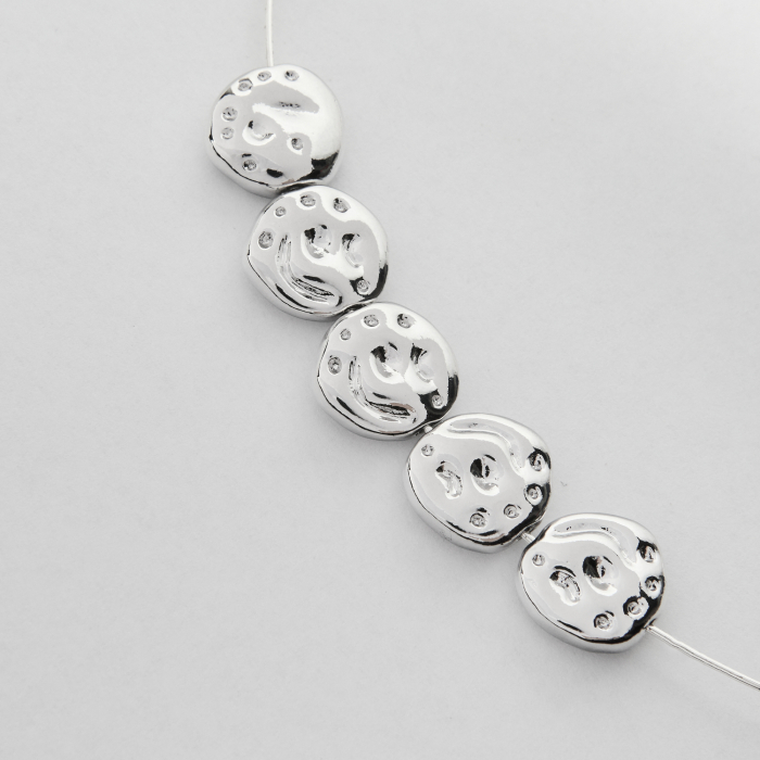 Przekładka krążek nieregularny z mosiądzu w kolorze srebrnym 13x4,5mm