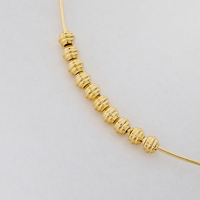Powierzchnia elementu została pokryta warstwą 14-karatowego złota próby 585 w procesie złocenia galwanicznego, co nadaje jej elegancki wygląd, spójny kolor i dekoracyjny charakter.