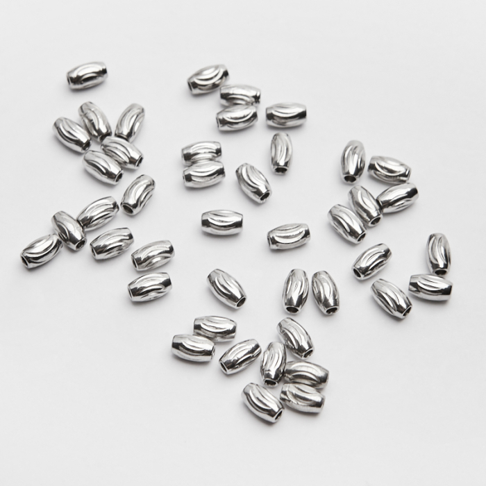 Przekładka oliwka nacinana ze stali chirurgicznej w kolorze srebrnym 3x5mmTo uniwersalny element wykończeniowy i dekoracyjny do projektów jubilerskich. Stal szlachetna dobrze sprawdza się w biżuterii noszonej na co dzień, ponieważ łączy trwałość z estetycznym wykończeniem.Element ozdobny ze stali szlachetnej może pełnić funkcję koralika, przekładki lub subtelnego detalu wykończeniowego w biżuterii handmade. Tego typu półfabrykaty pomagają uporządkować kompozycję, oddzielić większe elementy i nadać projektowi bardziej dopracowany wygląd.Rozmiar