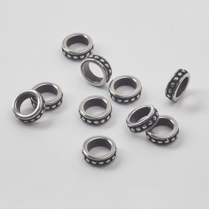 Przekładka oponka w kropeczki do męskich bransoletek ze stali chirurgicznej w kolorze srebrnym 9x3mmTo funkcjonalny komponent do biżuterii handmade. W biżuterii handmade stal chirurgiczna 316L jest ceniona za dobry wygląd, odporność na korozję i wygodę codziennego użytkowania.Element ozdobny ze stali chirurgicznej 316L może pełnić funkcję koralika, przekładki lub subtelnego detalu wykończeniowego w biżuterii handmade. Tego typu półfabrykaty pomagają uporządkować kompozycję, oddzielić większe elementy i nadać projektowi bardziej dopracowany wygląd.Rozmiar