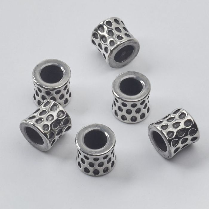 Przekładka oponka w kropeczki ze stali chirugicznej do męskich bransoletek w kolorze srebrnym 9,5x10mm