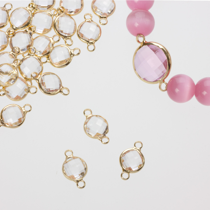 Przekładka w okuciu w złotym kolorze z dwoma oczkami crystal 8mm