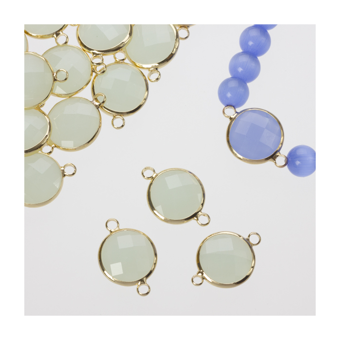 Przekładka w okuciu w złotym kolorze z dwoma oczkami opal mint 14mm