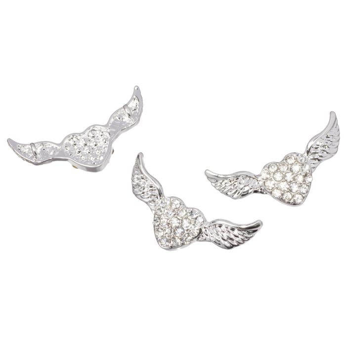 Przekładka z kryształkami serce ze skrzydłami koloru srebrnego 18x33mm