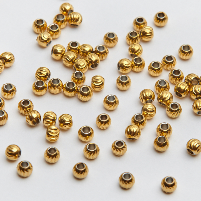Przekładki kulki nacinane ze stali chirurgicznej w kolorze złotym 4mmTo trwały i estetyczny element do tworzenia biżuterii handmade. To materiał chętnie wybierany do biżuterii handmade ze względu na trwałość, estetykę i wygodę użytkowania.Element ozdobny ze stali chirurgicznej 316L może pełnić funkcję koralika, przekładki lub subtelnego detalu wykończeniowego w biżuterii handmade. Tego typu półfabrykaty pomagają uporządkować kompozycję, oddzielić większe elementy i nadać projektowi bardziej dopracowany wygląd.Rozmiar