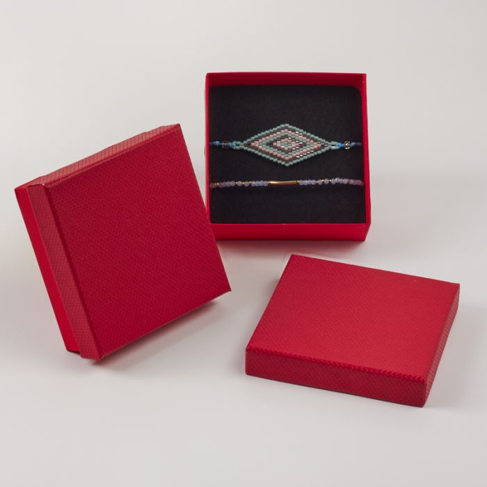 Pudełko do biżuterii ozdobne kwadratowe czerwone 9x9cm