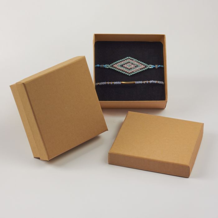 Pudełko do biżuterii ozdobne kwadratowe jasno brązowe 9x9cm