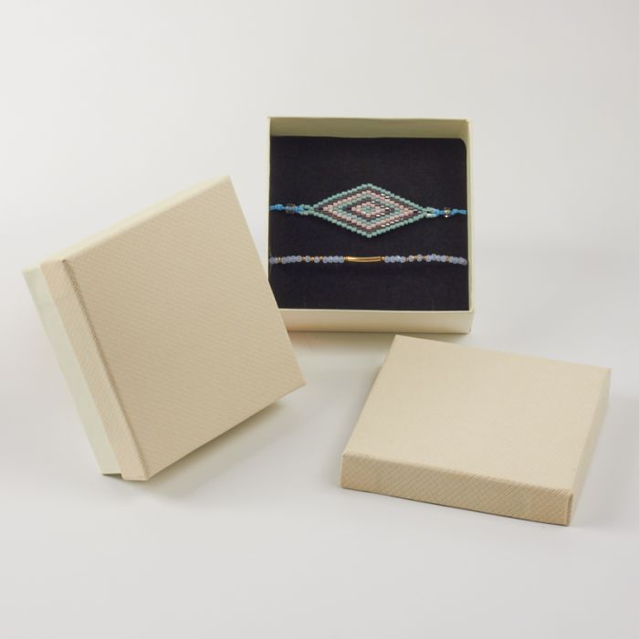 Pudełko do biżuterii ozdobne kwadratowe kremowe 9x9cm