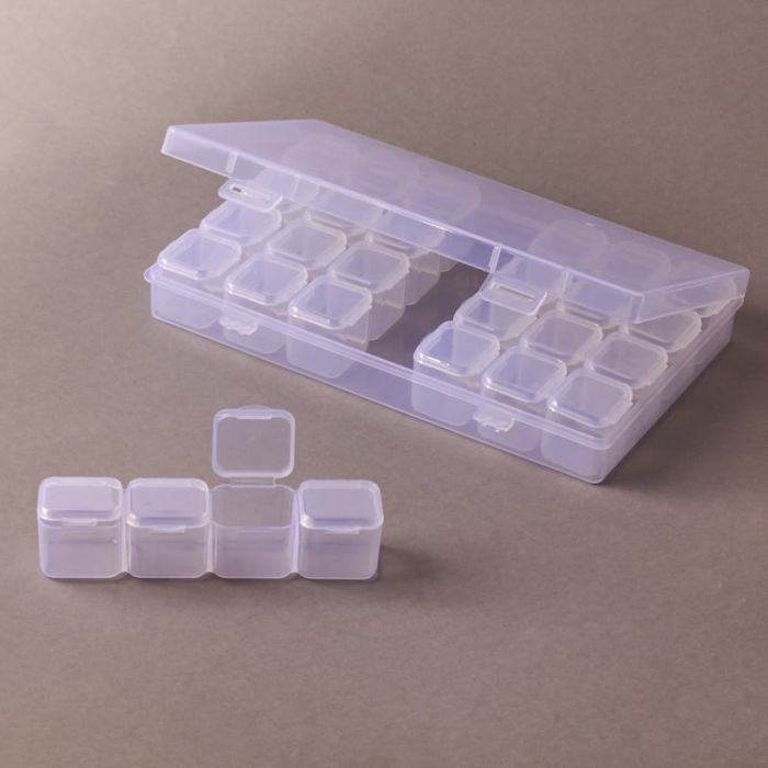 Pudełko do koralików 28 zamykanych przegródek 17,5x10,8x2,8cm