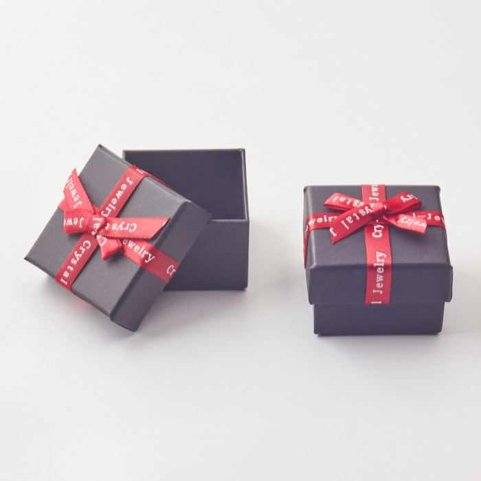 Pudełko ozdobne do biżuterii czarne ze wstążką 5,5x5,5x4cm
