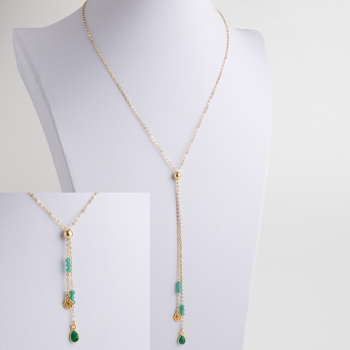 Regulowany naszyjnik z kocim okiem i zielonym onyksem