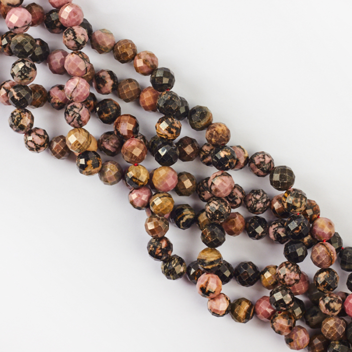 Fasetowane kulki rodonitu z licznymi inkluzjami i wrostkami tworzącymi ciekawe wzory na powierzchni kulek.*Ponieważ są to kamienie naturalne mogą się nieznacznie różnić od siebie rozmiarem.*Rozmiar podany w nazwie produktu jest wartością orientacyjną. Charakterystyka: