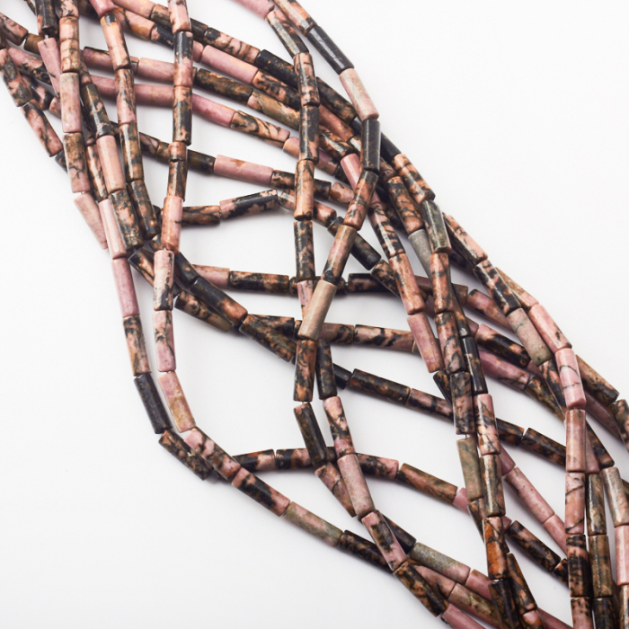 Rodonit wyróżnia się tym, że charakterystyczne różowo-czarne przejścia nadają mu wyrazisty, naturalny wygląd. Rodonit świetnie sprawdza się w autorskich projektach biżuterii o mocniejszym charakterze.