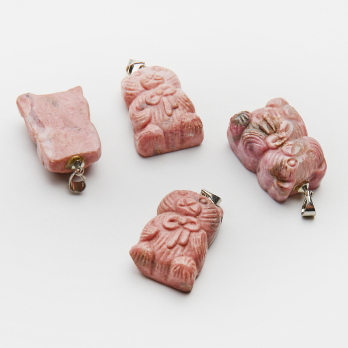 Rodonit zawieszka miś rzeźbiona z kokardką 30mm