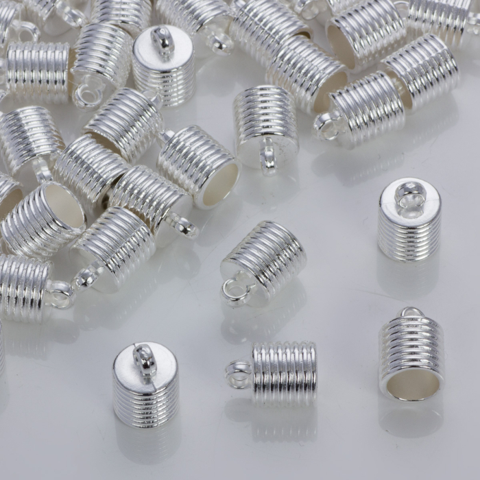 Rowkowane końcówki do rzemieni i sznurków w srebrnym kolorze 10mm