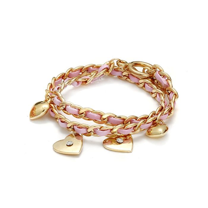Różowa bransoletka łańcuszek z sercami przeplatany 18-21cm