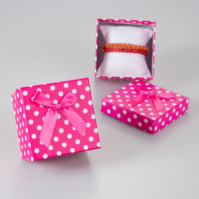 Różowe pudełko w kropeczki z kokardką 9x9cm