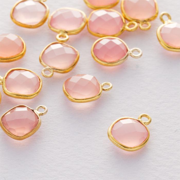 Różowy kryształ kwadrat fasetowany zawieszka w okuciu pozłacanym AG925 8x8mm