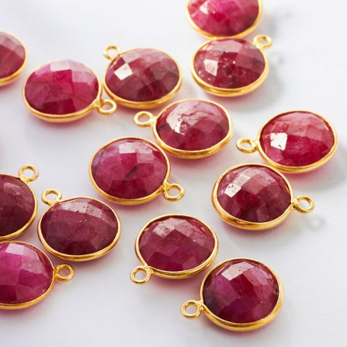 Rubin krążek fasetowany w okuciu AG925 pozłacany12mm
