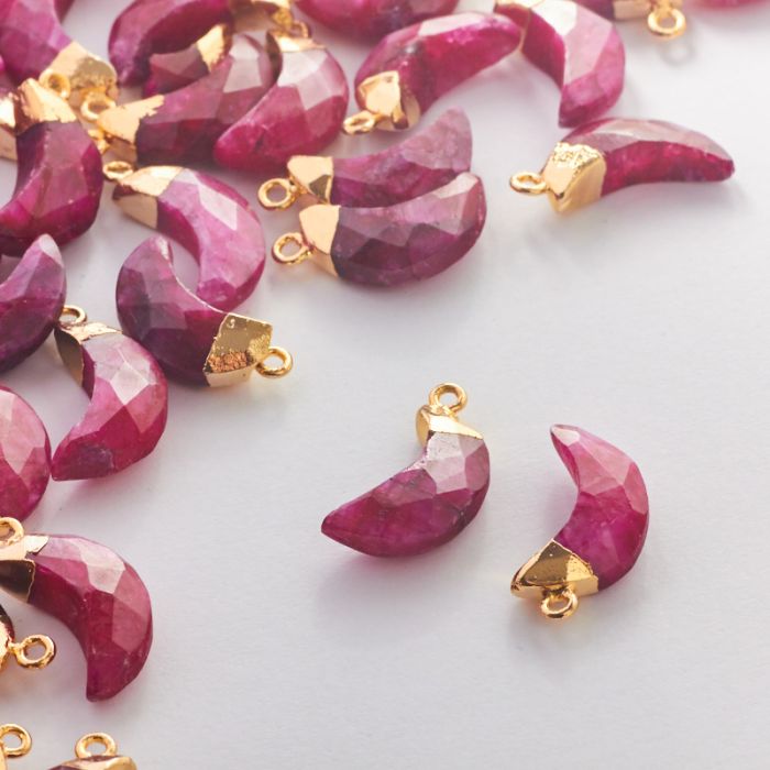 Rubin syntetyczny zawieszka księżyc fasetowany w okuciu 19mm