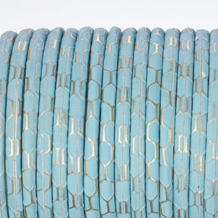 Rzemień klejony błękitny ze złotym wzorkiem 4mm