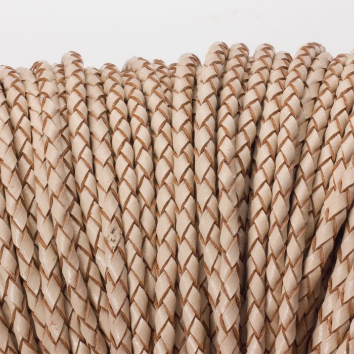 Rzemień naturalny pleciony lakierowany 3mm beżowy