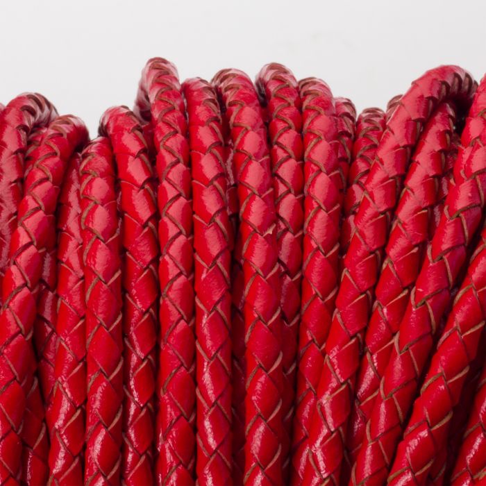 Rzemień naturalny pleciony lakierowany 4mm czerwony