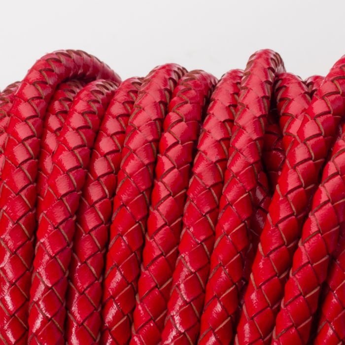 Rzemień naturalny pleciony lakierowany 5mm czerwony