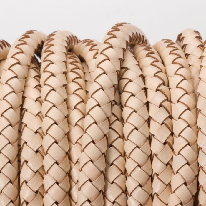 Rzemień naturalny pleciony lakierowany 6mm kremowy