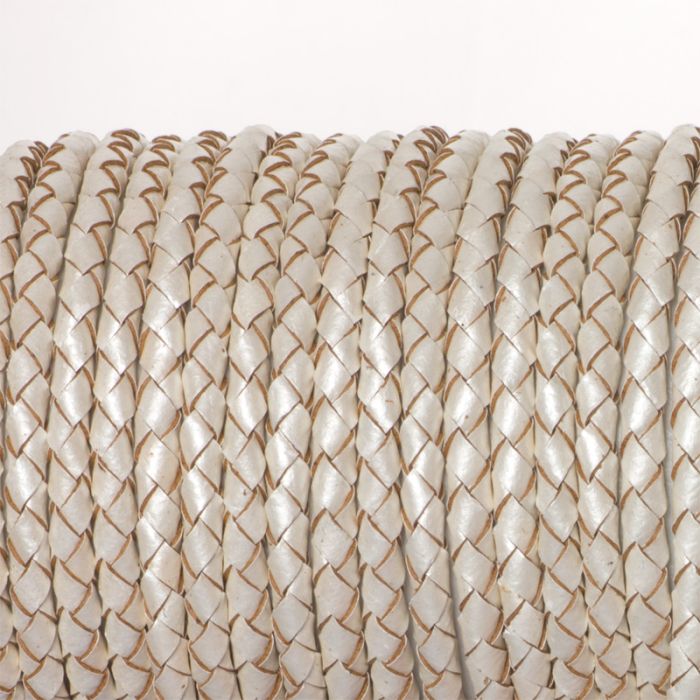 Rzemień naturalny pleciony metalizowany perłowy 4mm