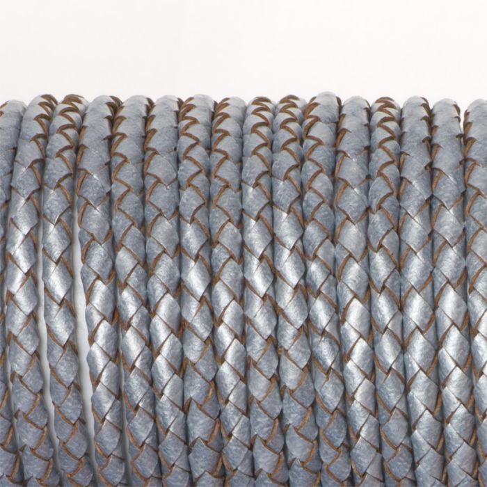 Rzemień naturalny pleciony metalizowany srebrny 4mm
