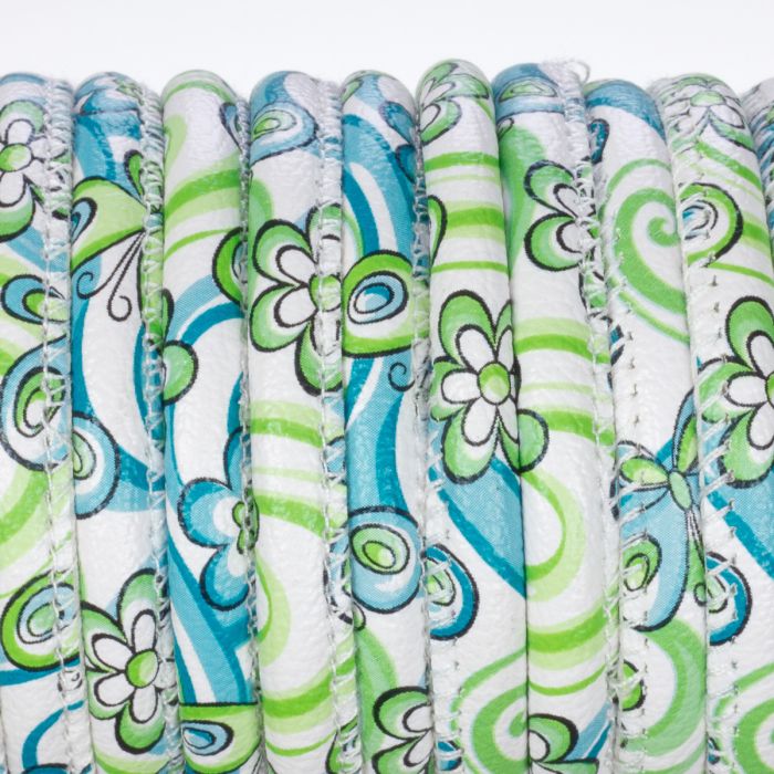 Rzemień szyty turkusowe kwiaty 6mm