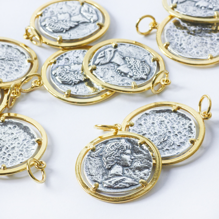 Srebrna antyczna moneta w złotym okuciu AG925 złoty 23mm