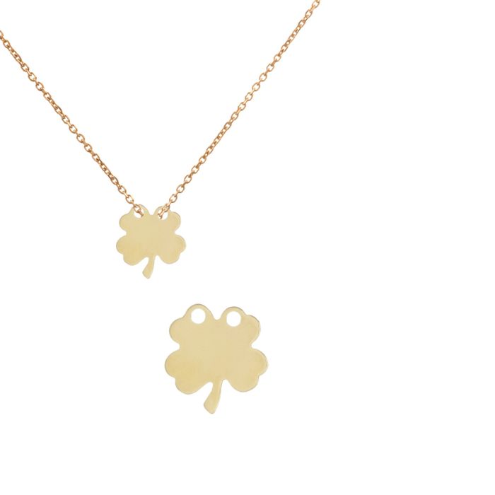 Srebrna blaszka celebrytka koniczynka z dwoma oczkami AG925 pozłacana 15x14,5mm