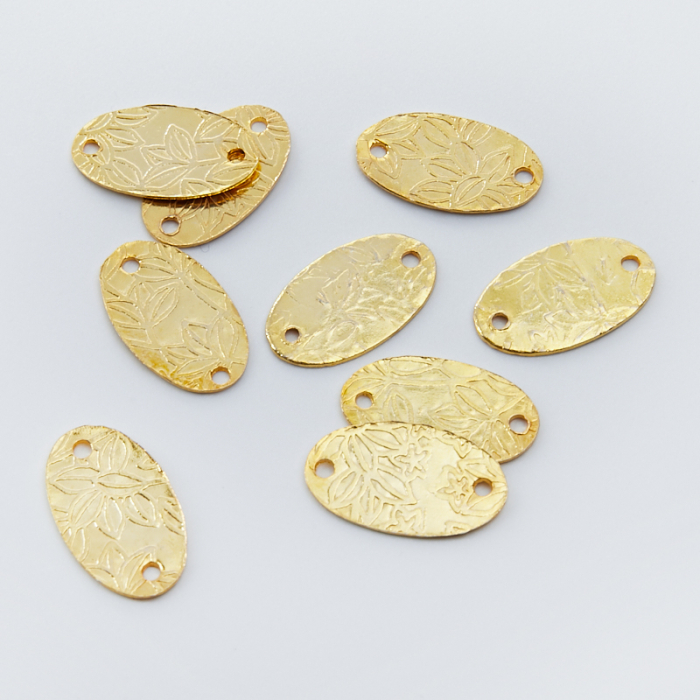 Srebrna blaszka owal łącznik ze wzorkiem AG925 pozłacana 20mm