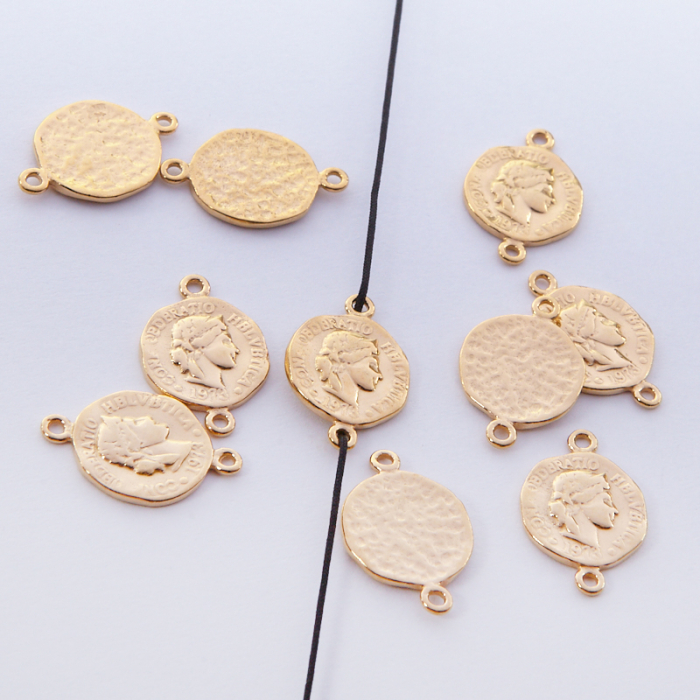 Srebrna moneta antyczna mała łącznik pozłacany 11mm
