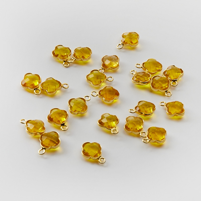 Srebrna zawieszka cytryn syntetyczny koniczyna marokańska w srebrnym okuciu AG925 pozłacana 8,5mm