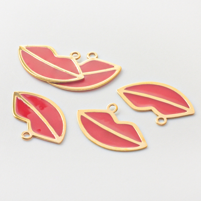 Srebrna zawieszka czerwone usta emaliowane AG925 pozłacana 20mm