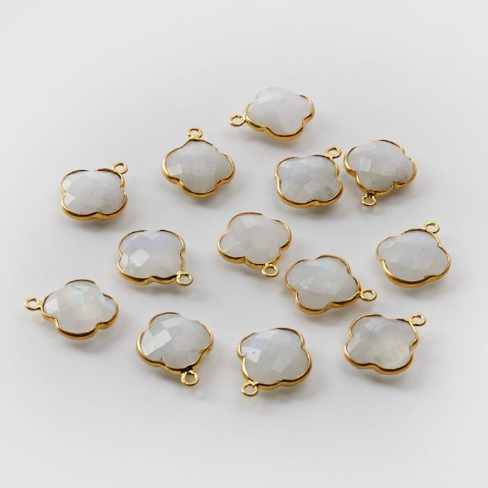 Srebrna zawieszka kamień księżycowy w srebrnym okuciu AG925 pozłacana 12,5mm