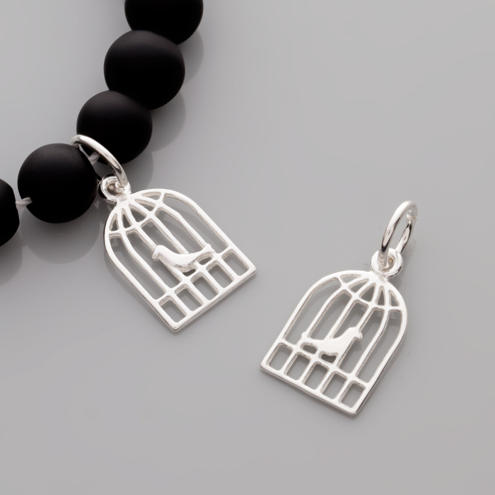 Srebrna zawieszka kanarek w klatce AG925 18mm