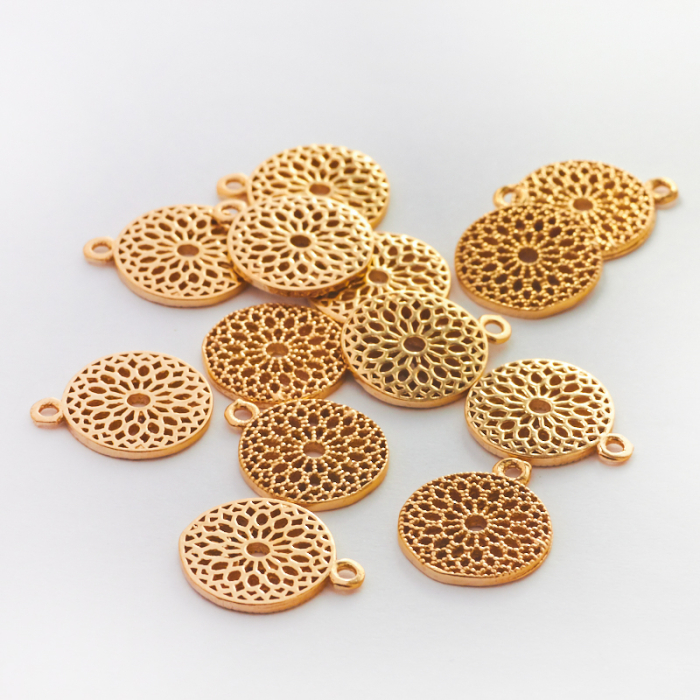 Srebrna zawieszka kółko ażurowe z kropeczkami pozłacane AG925 11,5mm
