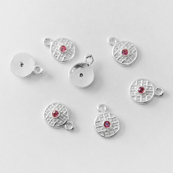 Srebrna zawieszka kółko z cyrkonią fuchsia AG925 7,5mm