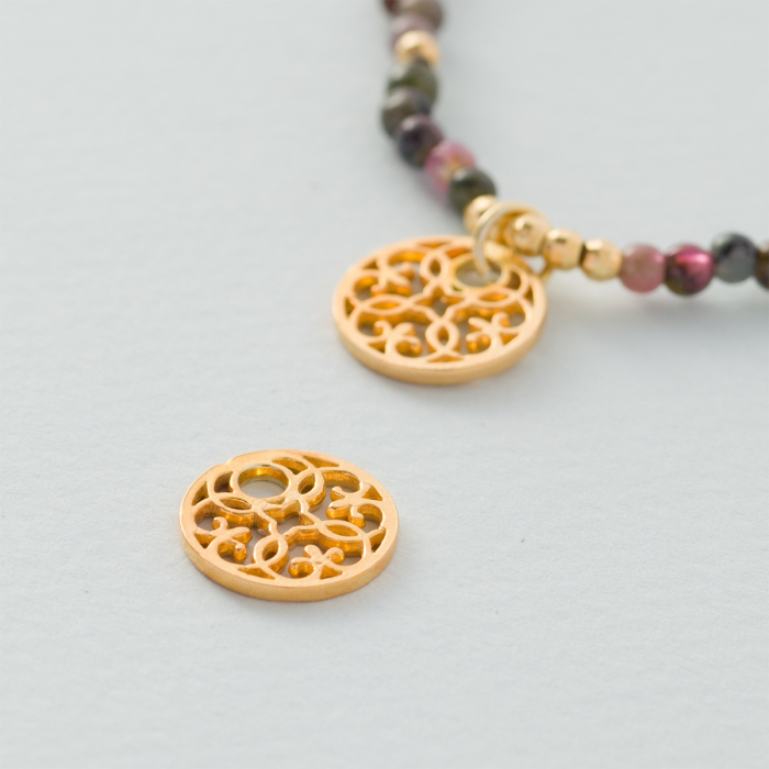 Element wykonany ze srebra próby 925 pokrytego warstwą złocenia galwanicznego łączy elegancki wygląd złota z dostępnością srebra. To rozwiązanie pozwala uzyskać efekt złotej biżuterii przy zachowaniu lekkości i uniwersalności projektu.