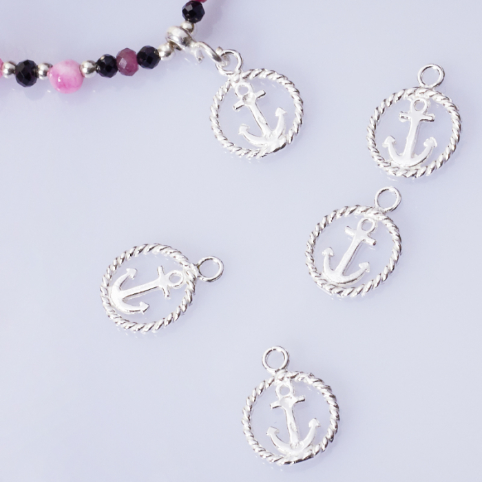 Srebrna zawieszka kotwica w kółku AG925 9mm