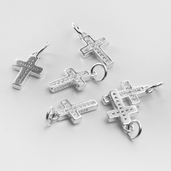 Srebrna zawieszka krzyżyk z cyrkoniami AG925 14mm