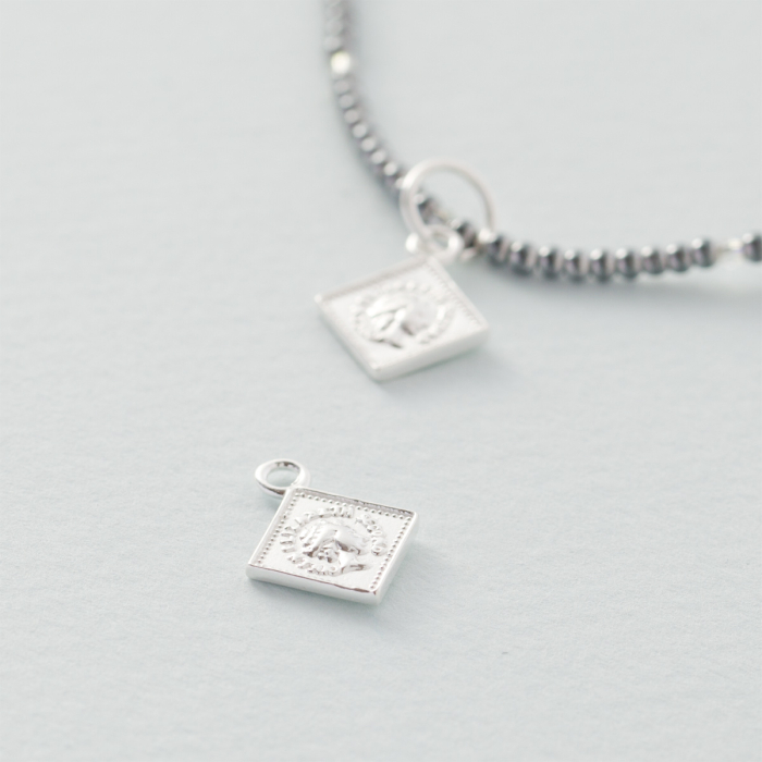 Srebrna zawieszka kwadrat Królowa Elżbieta II AG925 12mm