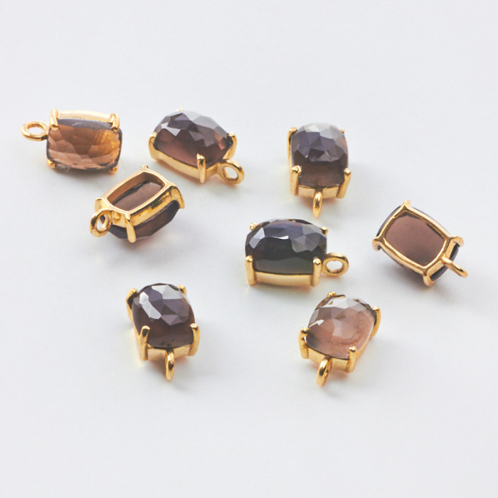 Srebrna zawieszka kwarc dymny w kasetce AG925 pozłacany 8x6mm