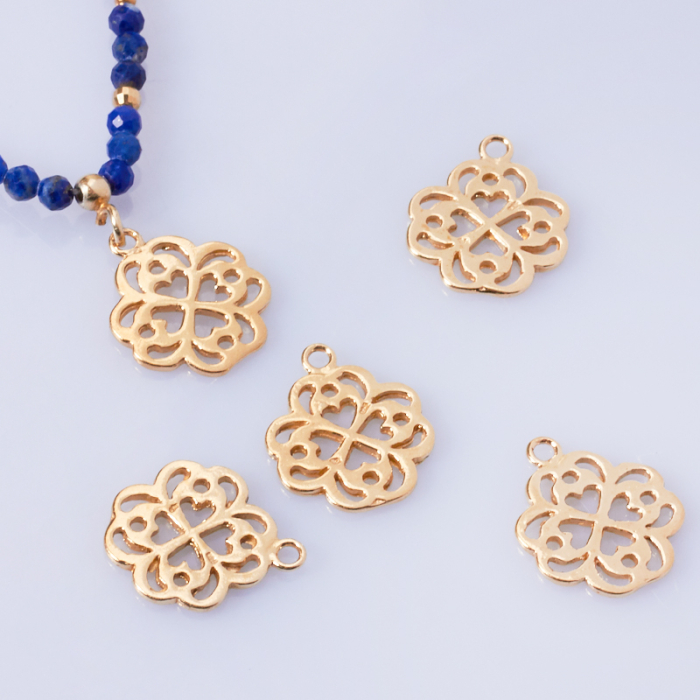 Srebrna zawieszka kwiatek ażurowy AG925 pozłacana 13mm