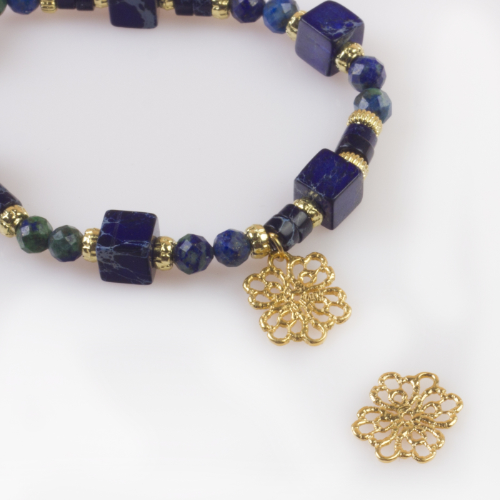 Produkt wykonany jest ze srebra próby 925 pokrytego warstwą złocenia galwanicznego. Złocenie stanowi warstwę wierzchnią i w trakcie użytkowania może ulegać naturalnemu ścieraniu. Trwałość powłoki zależy m.in. od intensywności noszenia, tarcia, kontaktu z wodą i kosmetykami oraz indywidualnego pH skóry. Proces ten jest naturalną cechą wyrobu złoconego i nie stanowi wady produktu.